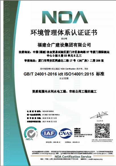 福建合廣建設(shè)集團(tuán)有限公司,注冊(cè)資本5188萬(wàn)元人民幣,公司位于廈門市同安區(qū)鳳山一里151-17號(hào)。本公司成立于2013年,公司具備市政公用工程、水利水電工程、房屋建筑工程、公路工程、園林綠化等多專業(yè)施工資質(zhì)。企業(yè)從業(yè)人員100多人,各類專業(yè)技術(shù)人員70多人,其中高級(jí)職稱8人,中級(jí)職稱40多人,一級(jí)建造師6人,二級(jí)建造師15多人。
